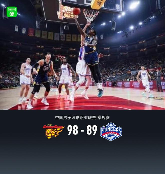 第四节,开节上来相继三分命中,继续保持拉锯,随后天津进攻断电,广东杜润旺、萨林杰、胡明轩相继得分领先9分,但随后广东连续进攻不中,天津持续造杀伤罚球追至4分,比赛最后阶段广东胡明轩连得8分收下比赛,最终广东98-89战胜天津。