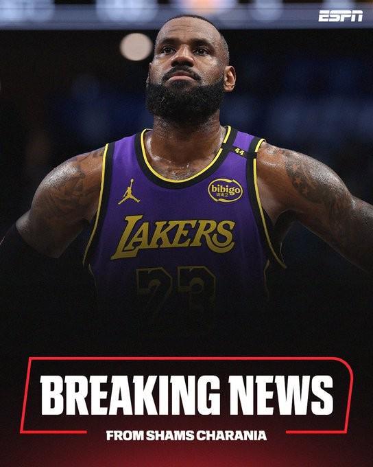 Shams:詹姆斯因右侧坐骨神经痛将至少休战34周,将生涯首次缺席揭幕战