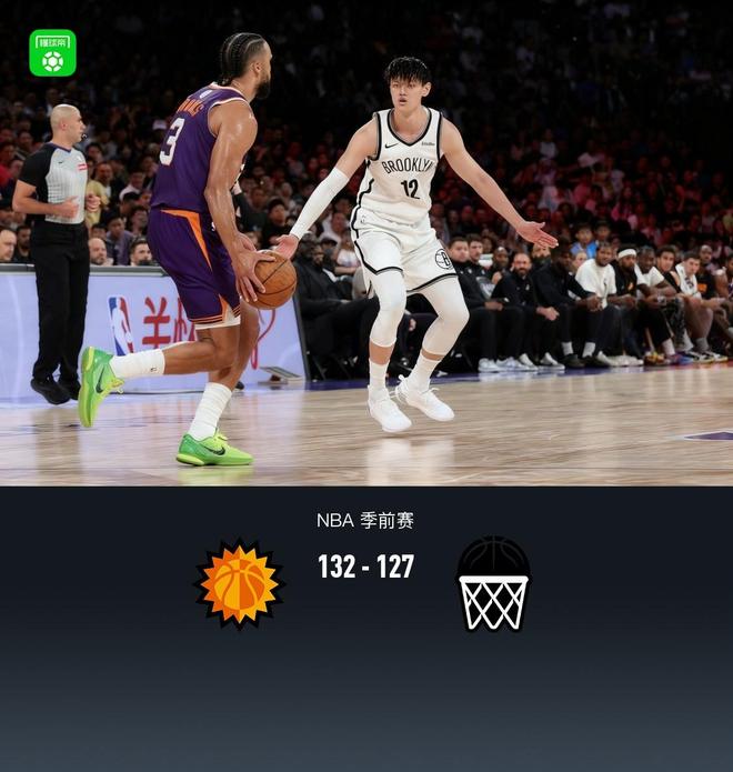 NBA中国赛太阳加时132127篮网,曾凡博首秀0出手1抢断,布克18分