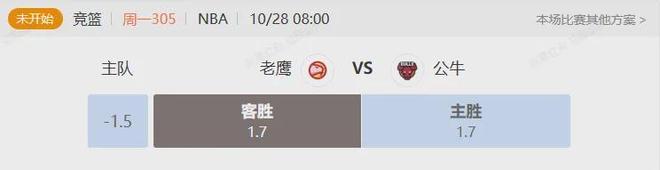 1.这场比赛给的是公牛在主场让1.5分,俩队实力差距不大上赛季排名也是紧挨着,本赛季公牛2胜0负分别赢了魔术和活塞,老鹰本赛季是1胜俩负,状态方面公牛更好,1.5是给的主场的分俩队实力相当这个平手pan都有机会