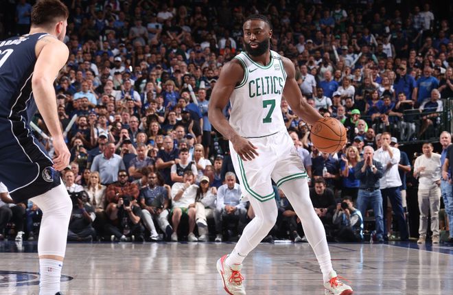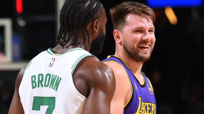 布朗至今得到861分+182板+140助;东契奇则是775分+191篮板+198助攻。
