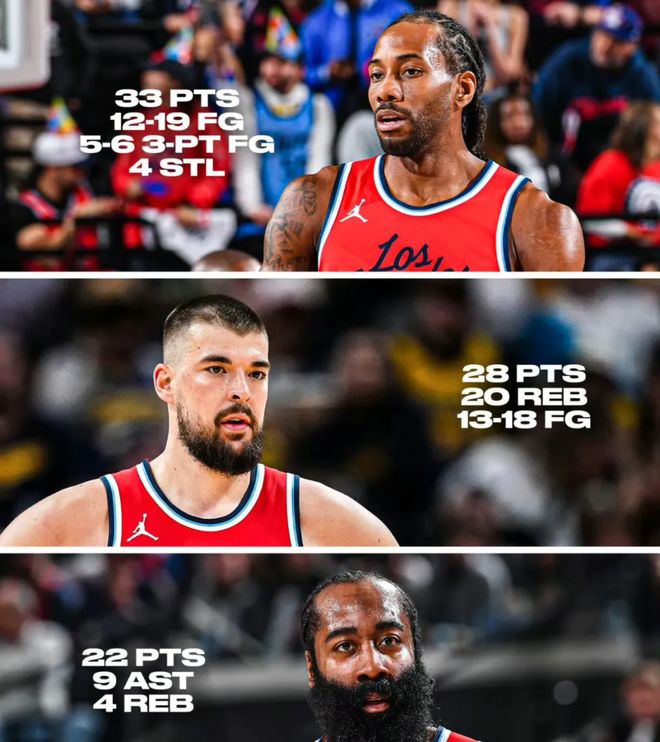 - 伦纳德24分5板4助、祖巴茨18分19板、哈登18分7板10助2断、米勒14分3板1助、科林斯13分5板1助、桑德斯11分4...发表于: 01-23 15:02