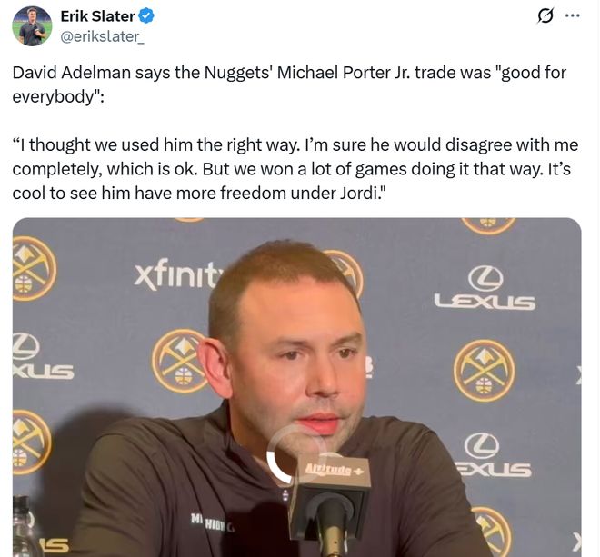 正如阿德尔曼所说,休赛期掘金那笔2换1交易是一笔实打实的双赢交易,在小波特如今打出傲人表现后,看似篮网成为赢家,掘金是交易输家,事实却并非如此。