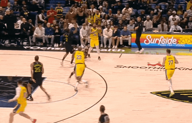 当勒布朗是在移动中接球,而非“卢卡单侧被夹击转移弱侧,勒布朗从零开始创造”时,湖人进攻好很多。