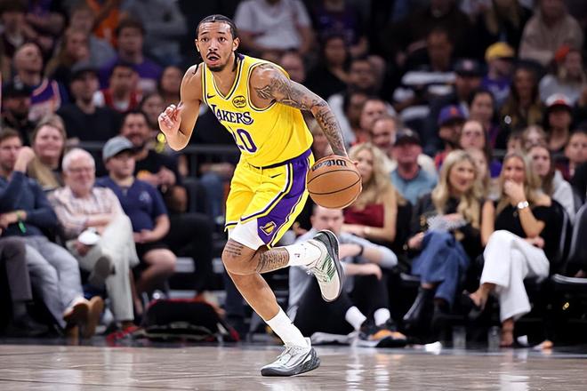 本场比赛中,湖人虽然最终还是有惊无险地取得了胜利,但是球队的双向合同后场新星小尼克-史密斯(Nick Smith Jr.)的表现令人大跌眼镜。史密斯全场出场9分39秒,投篮3中0,三分线外2中0,又一次全场1分未得,仅贡献1篮板1助攻的数据,还有1次失误和2次犯规,正负值为-2。史密斯在进攻端依然没有找到自己的手感,依然没有展现出自己的得分能力和投射能力,也没有起到传球和组织方面的作用,可以说是完全没有发挥出自己应有的价值。不仅如此,史密斯在防守端的能力又比较有限,同样无法展现出自己的实力。攻防两端的作用都非常有限,史密斯可以说是又一次拖了球队的后腿。幸好湖人先发球员们的表现足够出色,史密斯的糟糕状态也没有影响到球队的这场胜利。
