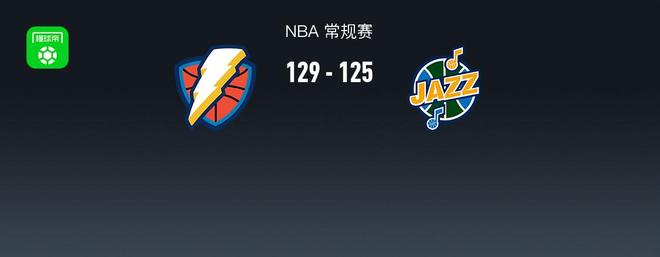 加时赛雷霆亚历山大拿下9分,爵士马尔卡宁拿下3分,最终雷霆129-125战胜爵士