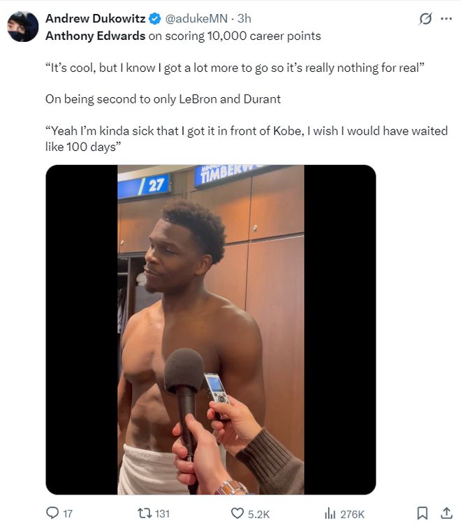 3.爱德华兹也是历史第七位25岁之前达成万分的球员:科比、麦迪、詹姆斯、杜兰特、甜瓜、东契奇、华子;
