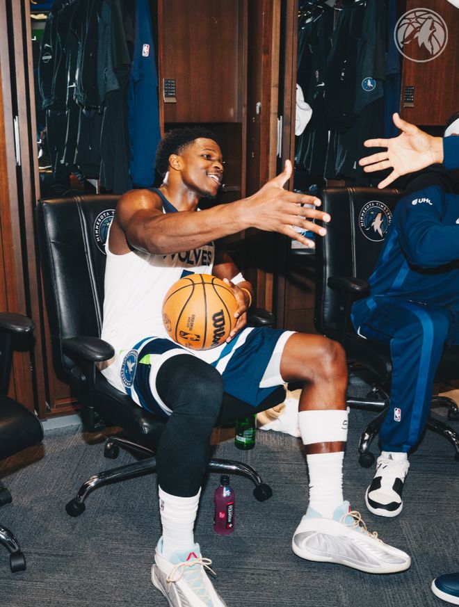 这场比赛爱德华兹并没有特别的爆炸,全场比赛37分钟,20中10,三分7中4,罚球2中1,拿到25分9助攻7篮板1抢断1盖帽,命中率50%,三分命中率57.1%,真实命中率59.9%,正负值+19。赛后球队将这场比赛的比赛用球给了华子,因为这是他的万分生涯之夜。