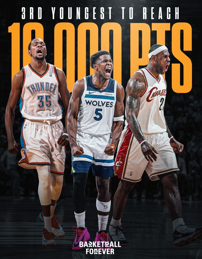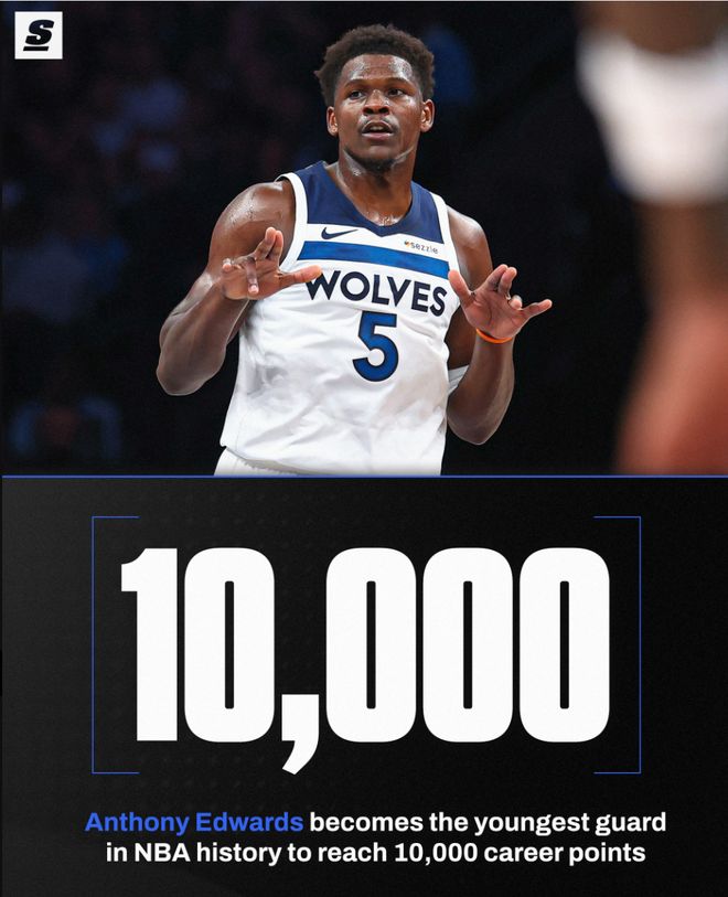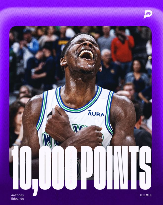 这场比赛爱德华兹一战创造多项纪录:1.他成为森林狼队史最快的10000分先生;