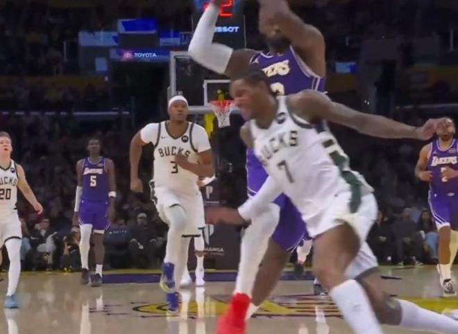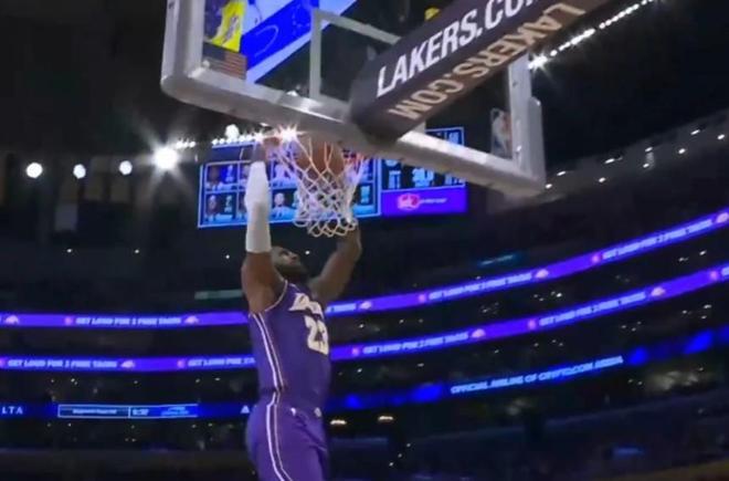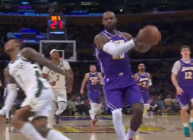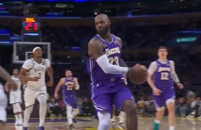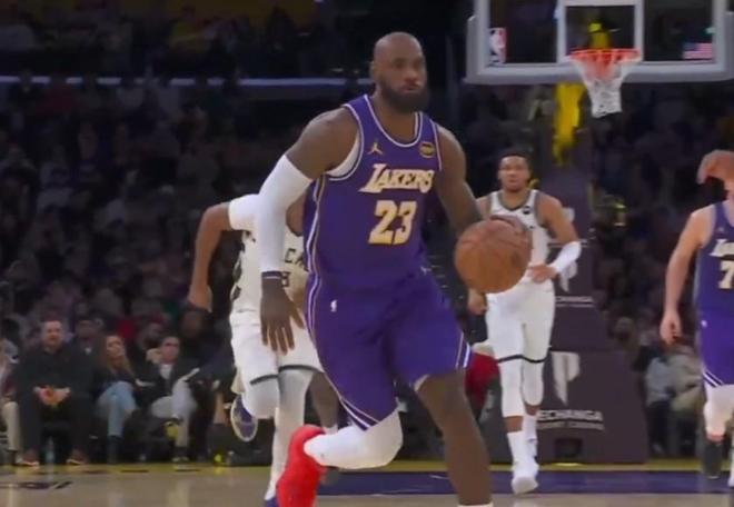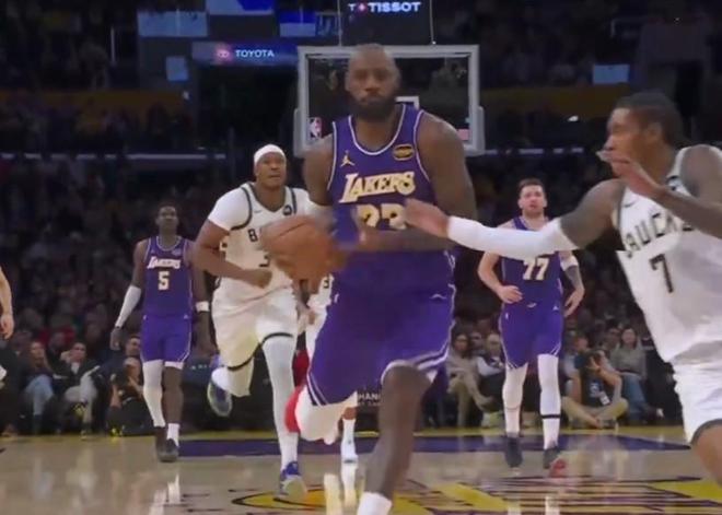 北京时间今日,在NBA常规赛中,洛杉矶湖人队主场对阵密尔沃基雄鹿队。在本场比赛的第二节中,詹姆斯获得了一次快攻机会。在自己非常擅长的领域,詹姆斯运球一路杀向对方篮下,面对前