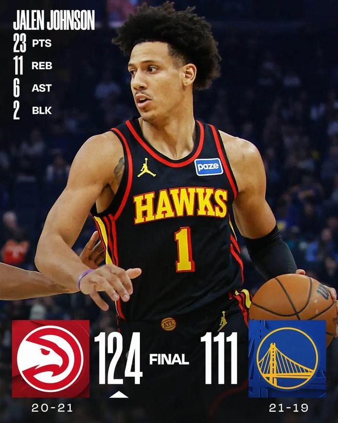库里31分约翰逊23+11 老鹰轻取勇士