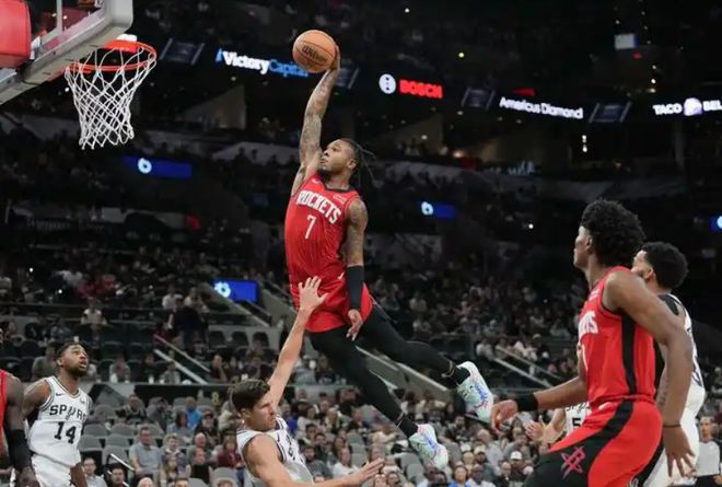 但惠特莫尔在火箭的两个赛季并未获得足够的机会。尽管在有限的时间里表现出色——2023-24赛季场均12.3分3.8篮板,投篮命中率45.4%;当他首发出场的5场比赛中,场均能得到20.2分6.8篮板,投篮命中率高达54.1%——但火箭人才济济且有战绩压力,无法为他提供更多上场时间。
