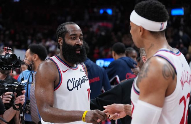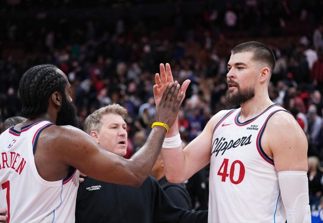 好在快船还算争气,尽管在对阵猛龙的比赛中,他们几乎全程落后,但最终还是咬牙把比赛拖入加时,并且逆转取胜。卡子哥不在,自然是登哥挺身而出,后者这场比赛也真是豁出去了,发挥无可挑剔。全场出战42分钟的登哥,先抑后扬,上半场运动战13中3,最终却以27投10中的效率,交出了31分2篮板10助攻的成绩单,特别是在从进入末节决战后开始,登哥接管了比赛。在第四节和加时赛,哈登贡献16分3助攻,他一次又一次地冲击篮筐,为快船啃下了猛龙这块硬骨头。
