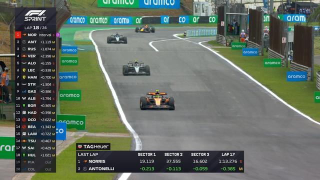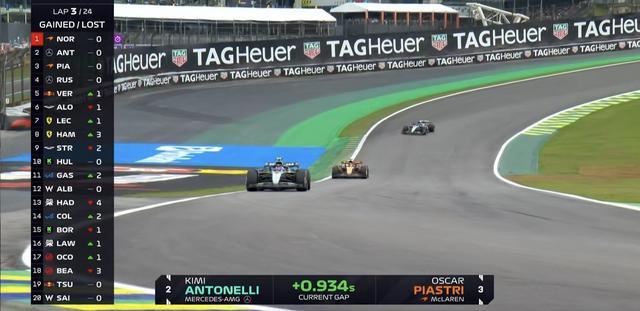 F1巴西站冲刺赛:诺里斯夺冠,安东内利第2,皮亚斯特里退赛