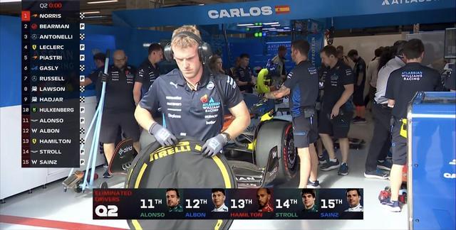 Q2被淘汰车手:阿隆索、阿尔本、汉密尔顿、斯特罗尔、塞恩斯;