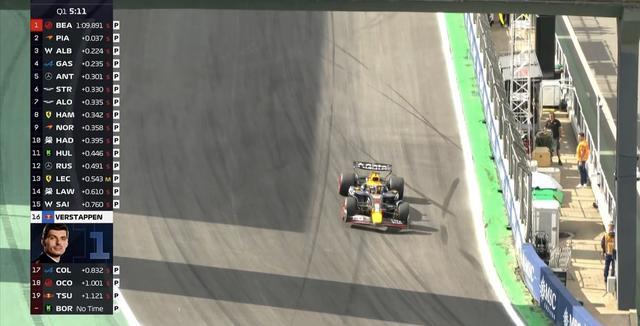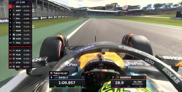 F1巴西站排位赛:诺里斯杆位,汉密尔顿第13,维斯塔潘第16