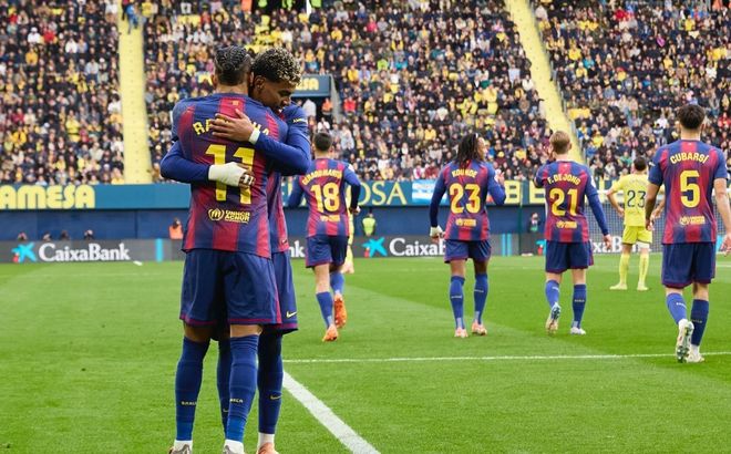 比赛刚刚开打第12分钟,拉菲尼亚就为巴萨赢得一粒点球,并且亲自操刀命中,帮助球队取得了1-0的梦幻开局,半场结束之前,维加飞铲亚马尔被主裁红牌罚下,更让黄潜雪上加霜,下半场亚马尔门前乱战中抽射建功,将领先优势扩大到了2球,虽然少一人作战的黄潜最后一度形成围攻之势,但靠着门将霍安加西亚的神勇发挥,巴萨成功零封了对手。