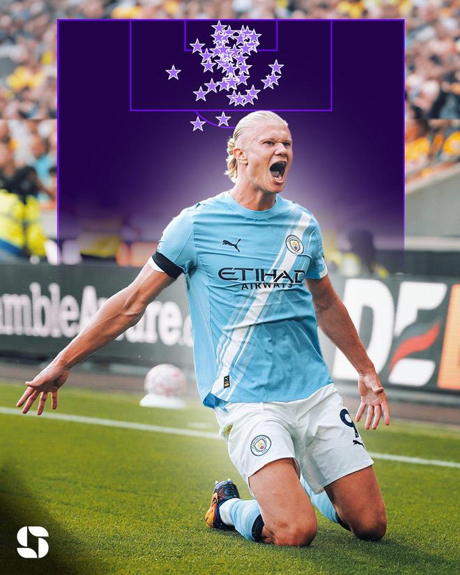 哈兰德对阵那不勒斯全场数据:4次射门1粒进球,解锁里程碑