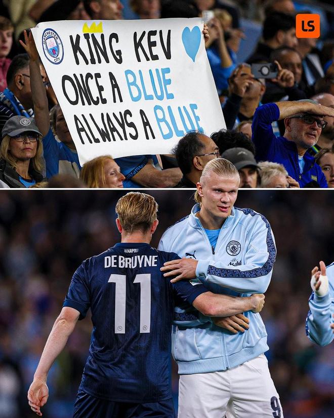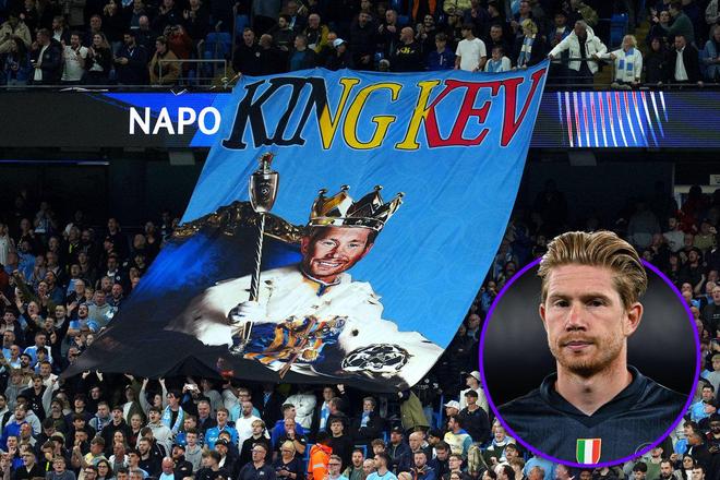 国王凯文重返阿提哈德,曼城球迷打出横幅致敬德布劳内