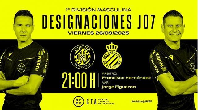 9月25日讯 北京时间9月27日凌晨3:00,2025-26赛季西甲联赛第7轮,西班牙人将客战赫罗纳。赛前,西班牙足协官方公布了本场比赛的裁判安排。主裁判是弗兰西斯科-埃尔南德斯,VAR裁判