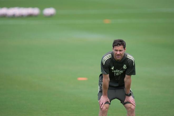 阿隆索在场边观看球员训练 新华社记者 黄宗治 摄