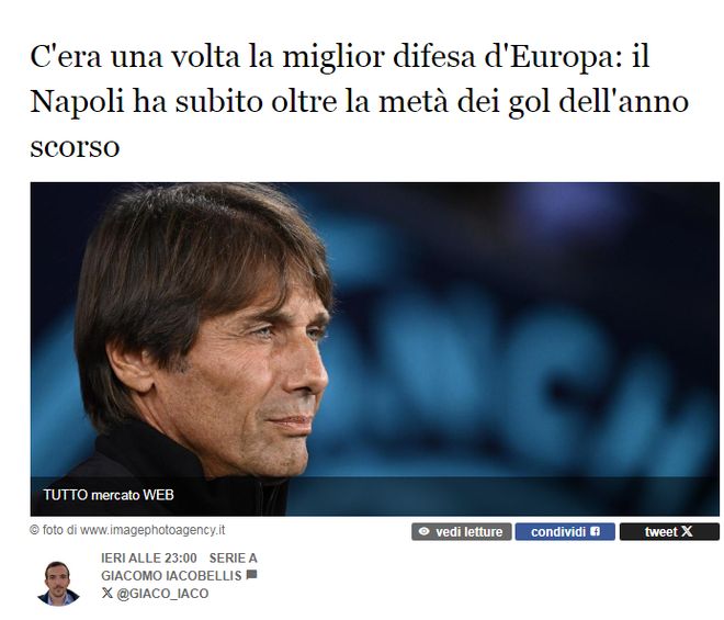 然而进入本赛季,那不勒斯那条稳固的防线荡然无存,2-6惨败给埃因霍温之后,那不勒斯本赛季的丢球数已经达到了16粒。虽然本赛季那不勒斯面临多线作战,但只踢了10场比赛(意甲+欧冠),失球数就超过上赛季总丢球数的一半。