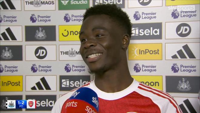 在英超第6轮客场2-1击败纽卡斯尔联之后,阿森纳前锋萨卡接受了来自天空体育的采访。