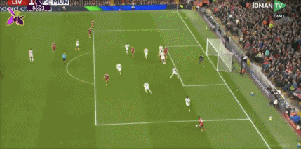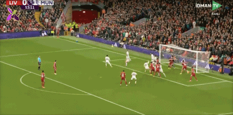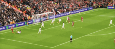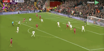 第50分钟,萨拉赫传中,加克波禁区左侧停球,右脚爆射击中立柱弹出!