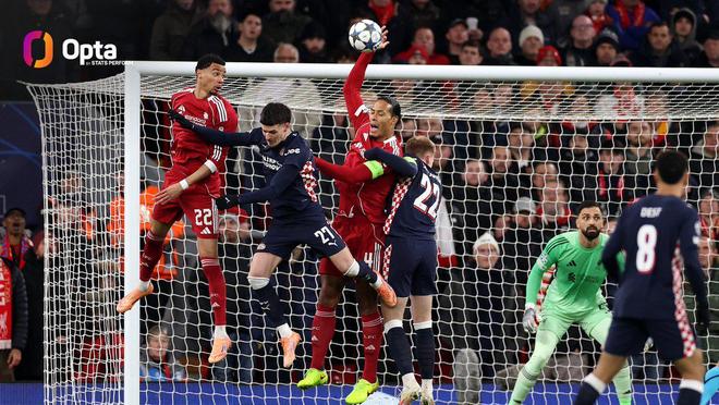 欧冠联赛阶段第5轮,利物浦主场对阵埃因霍温,上半场利物浦后卫范戴克手球送点,据统计,范戴克本赛季各项赛事已3次送点,为英超球员最多。比赛进行到大约5分钟,埃因霍温球员费尔曼在
