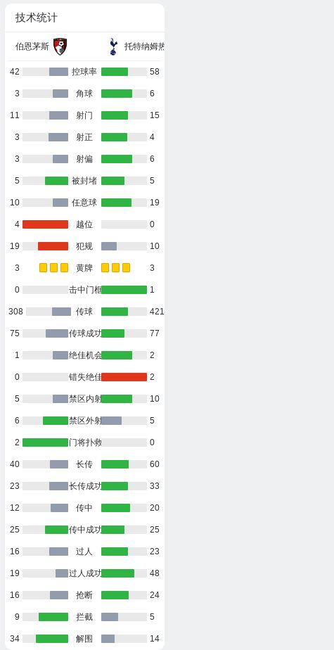 第22分钟,塔韦尼耶传中,埃万尼尔松头球破门,伯恩茅斯1-1热刺