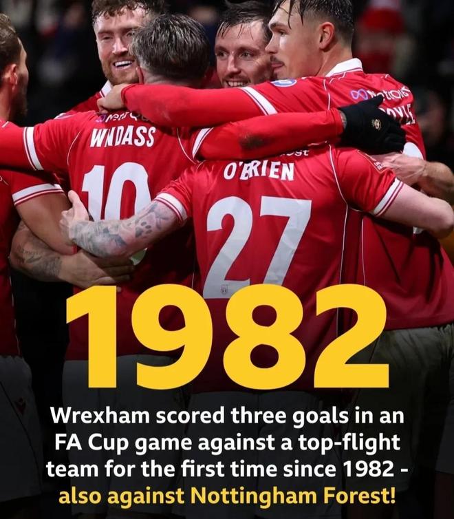 兄弟,北京时间1月10号的足总杯第3轮爆出超级大冷门!英冠球队雷克瑟姆在主场居然淘汰了英超劲旅诺丁汉森林,全程看得我目瞪口呆!120分钟3-3战平,最后点球大战4-3取胜,总比分7-6昂首