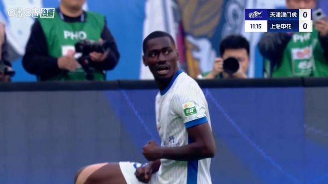 另外一场比赛中,上海申花同样客场挑战天津津门虎。上半场开场第11分钟,天津津门虎防线出现低级失误,阿苏埃抢断罗斯后单刀球入禁区,一脚果断施射完成破门,申花同样1-0领先对手。第38分钟,津门虎门将开球失误,特谢拉一脚吊射高出横梁。尾声阶段,津门虎球员疑似手球,VAR核实后主裁判未做判罚。补时阶段,蒋圣龙造成津门虎球员禁区手球,VAR介入后裁判判罚点球,吴曦点射破门,申花半场2-0领先。