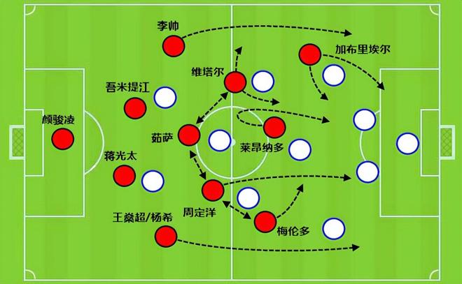 因为梅伦多有一部分的边前腰属性,莱昂纳多回撤、梅伦多内收后,加布里埃尔可以作为箭头突前,周定洋的价值就是他是中超最好的B2B,具备后排前插得分的效果,利用到莱昂纳多回撤后留下的空间,也给莱昂纳多二次跟进提供机会。