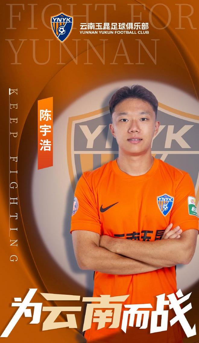 在官宣乔迪的同时,云南玉昆也在积极引援升级球队阵容。今天中午俱乐部官宣陈宇浩在租借结束后触发买断条款,正式转会加盟球队,这算是球队官宣的首个“新援”。